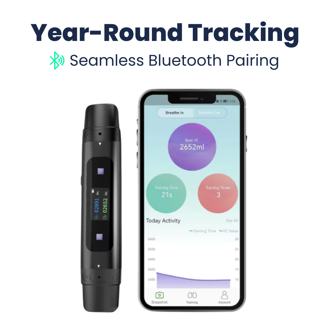 Our simple process is designed to keep you on track: measure your lung function, train your breathing muscles, and breathe stronger every day.